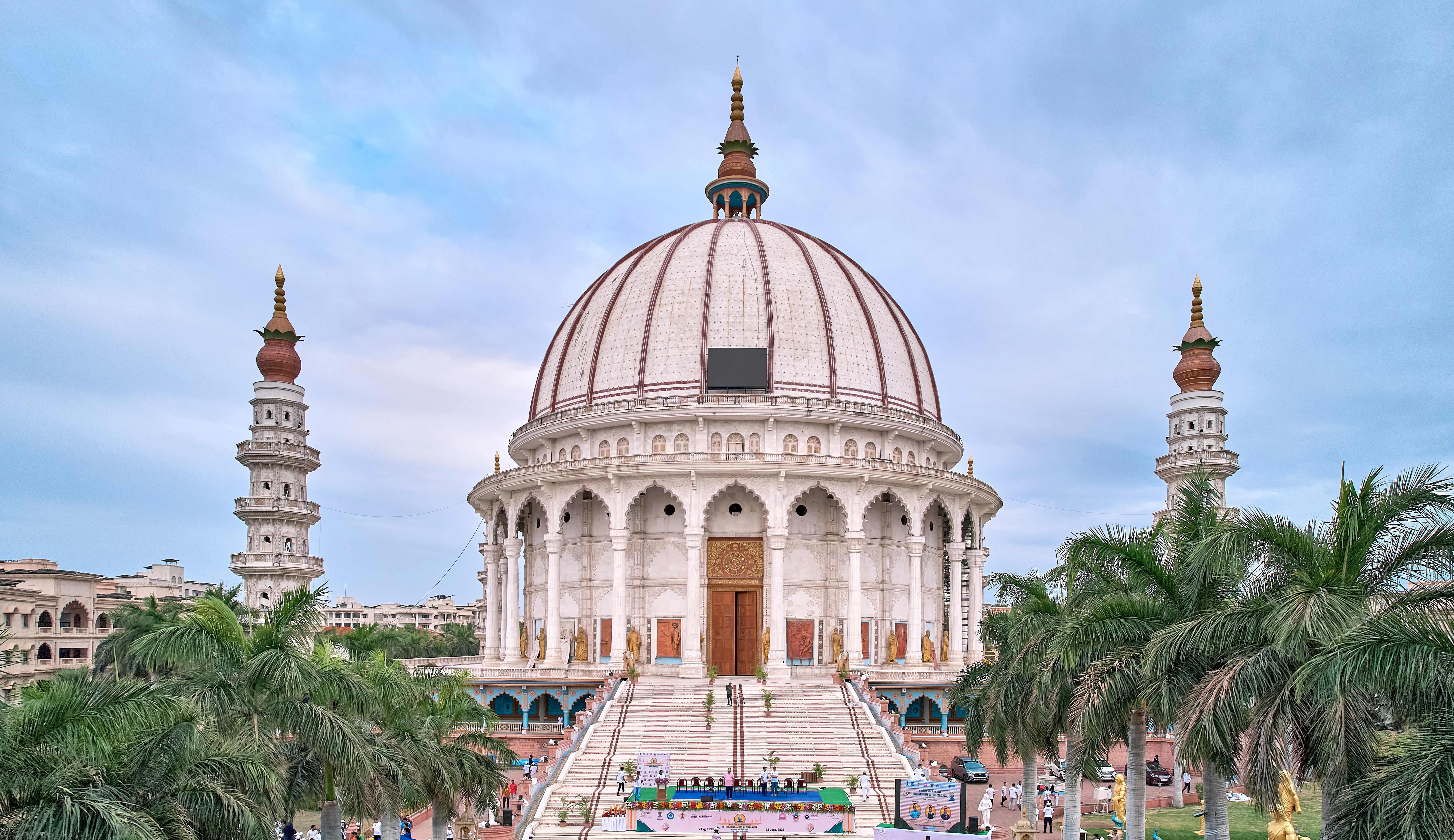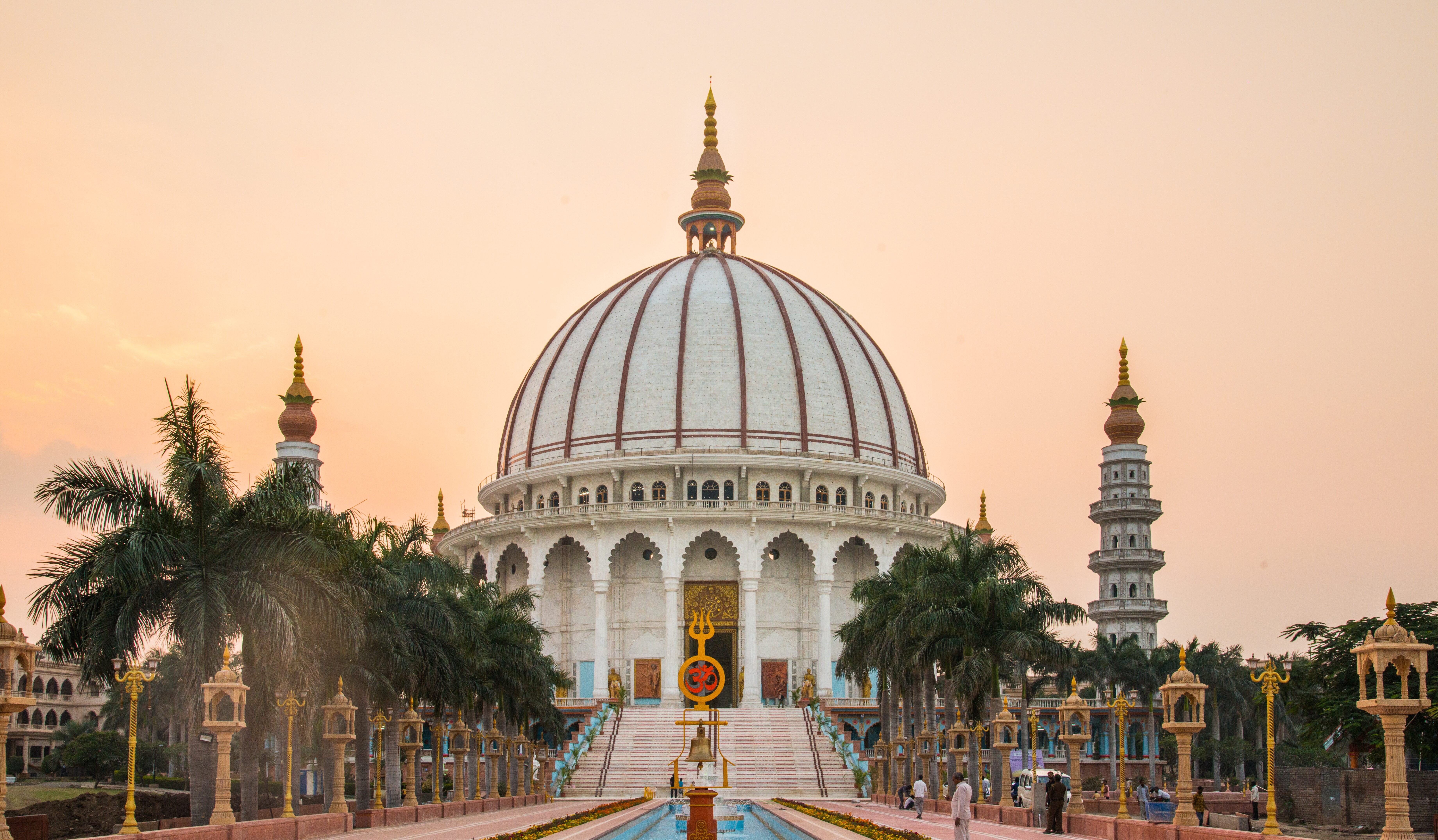 The dome stands tall at 96’ with a diameter of 160’ with four minarets surrounding it at the four corners of its platform. It houses around 54 statues of renowned saints, sages, scientists & researchers.