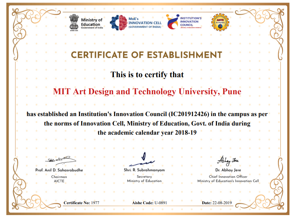 IIC systematically fosters the culture of Innovation, to encourage, inspire and nurture young students of MIT ADT University by supporting them to work with new ideas and transform them into prototypes. IIC MIT ADTU works inline with the Ministry of Education's Innovation Cell (MIC)'s objectives.